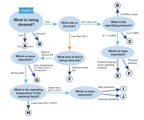 Guide de sélection des buses : Veuillez sélectionner votre nettoyeur de réservoir idéal en fonction de l'utilisation et des objectifs de nettoyage :