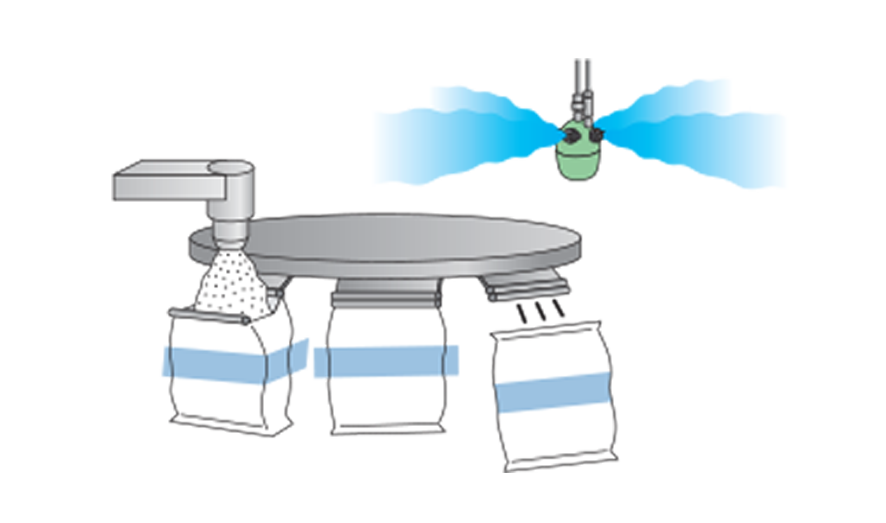AKIMist® est unique en raison de sa capacité à ne pas mouiller, grâce à la taille extrêmement petite de ses gouttelettes, environ 7,5 µm, ce qui le rend idéal pour les environnements sensibles. Les minuscules gouttelettes peuvent également supprimer la poussière, ce qui en fait une combinaison idéale pour une ligne d’emballage alimentaire.