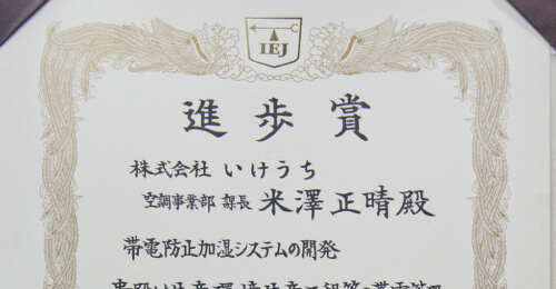 Réception du prix d’excellence de l’Institut électrostatiques japonais pour le développement du système antistatique